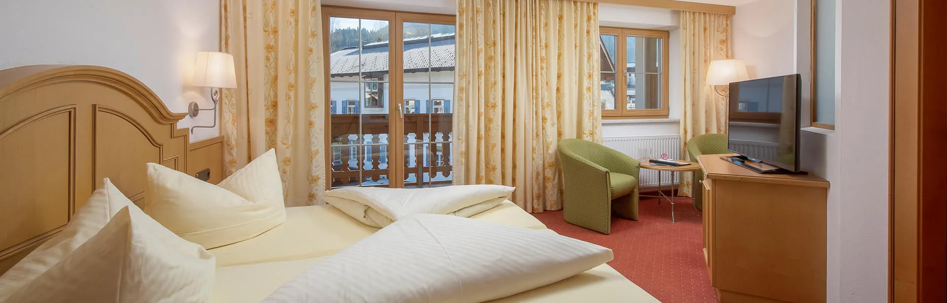 Unsere Komfortzimmer verfügen alle über Dusche/WC oder Bad, Fön, Sat-TV (deutschsprachig), teilweise mit Telefon und Balkon. Zimmerkategorie "Wohnkomfort" und "Tirol" im Haupthaus verfügen über einen W-LAN Anschluss. (kostenlos)